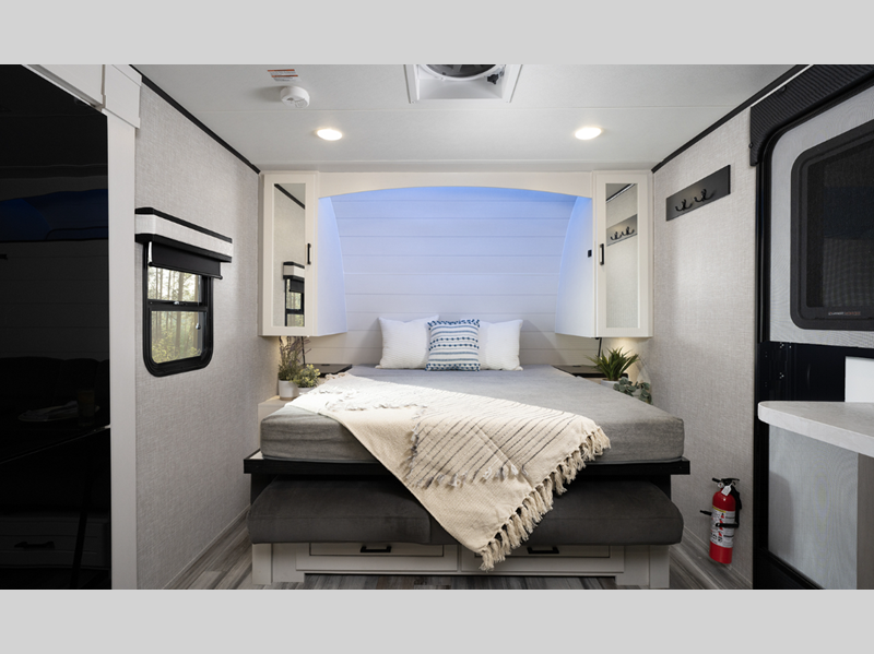 Sleeps 4 Slides 1 Length 23 ft Ext Width 8 ft Ext Height 10 ft 10 in Int Height 6 ft 6 in Interior Color Vintage Farmhouse Hitch Weight 535 lbs GVWR 5650 lbs Dry Weight 4400 lbs Cargo Capacity 1250 lbs Fresh Water Capacity 55 gals Grey Water Capacity 38 gals Black Water Capacity 38 gals Tire Size ST225/75R15E Furnace BTU 19000 btu Number Of Bunks 2 Available Beds Murphy Refrigerator Type 12V Refrigerator Size 11 cu ft Convection Cooking Yes Cooktop Burners 2 Number of Awnings 1 LP Tank Capacity 20 lbs Water Heater Type On Demand AC BTU 13500 btu TV Info LED Smart TV Awning Info 15' Max-Length Power w/LED Light Axle Count 1 Number of LP Tanks 2 Shower Type Standard Similar Floorplans