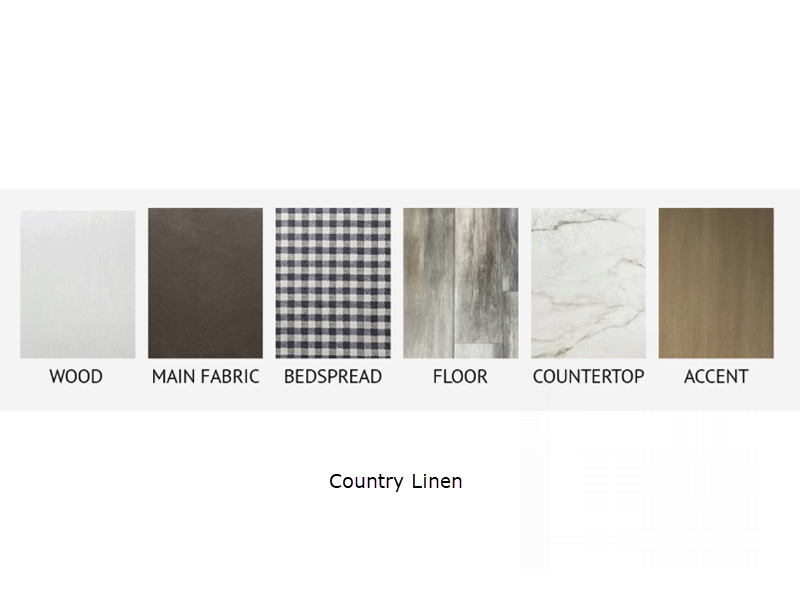 Sleeps 6 Length 30 ft 4 in Ext Width 8 ft Ext Height 10 ft 9 in Int Height 6 ft 9 in Interior Color Country Linen Hitch Weight 860 lbs GVWR 8500 lbs Dry Weight 5315 lbs Cargo Capacity 3185 lbs Fresh Water Capacity 52 gals Grey Water Capacity 39 gals Black Water Capacity 39 gals Tire Size ST225/75R15E Furnace BTU 25000 btu Available Beds Queen Refrigerator Type 12V Refrigerator Size 8 cu ft Cooktop Burners 3 Number of Awnings 1 Garage Size 5 ft 11 in LP Tank Capacity 20 lbs Water Heater Type Tankless AC BTU 13500 btu Awning Info 16' Power with LED Lights Axle Count 2 Number of LP Tanks 2 Shower Type Radius Electrical Service 30 amp Similar Floorplans