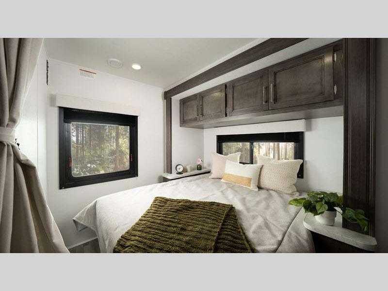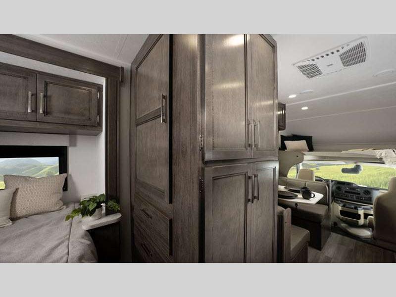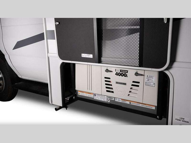 This entry-level Class C coach is perfect for all your travel and camping needs. The heating pads on the holding tanks help maintain functionality in colder weather, making late season camping more comfortable and worry-free, and the 4,000W generator will keep you powered up. There is also a durable Tufflex PVC laminated roof and Stronghold VBL roof, floor, and sidewall construction. Inside, you'll enjoy pleated blackout shades, high-intensity, recessed LED ceiling lights, an 84" ceiling height, and many more comforts.