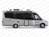 Sleeps 2 Slides 1 Length 25 ft 1 in Ext Width 7 ft 11 in Ext Height 10 ft 6 in Int Height 6 ft 4 in Interior Color Dove, Sand, Clay Exterior Color Euro Sport, Silver, Diamond White, Glacier, Atlantic Blue GVWR 11030 lbs Fresh Water Capacity 25.6 gals Grey Water Capacity 35 gals Black Water Capacity 30.6 gals Fuel Type Diesel Engine 2.0-L Turbocharged I-4 Diesel Chassis Mercedes-Benz Sprinter 3500 Horsepower 208 hp Fuel Capacity 24.5 gals Wheelbase 170 in Available Beds Murphy Torque 332 ft-lb Refrigerator Type 12V Compressor Refrigerator w/Bottom Freezer Convection Cooking Yes Cooktop Burners 2 LP Tank Capacity 15.8 gals. Water Heater Type Truma AquaGo Comfort Plus AC BTU 13500 btu Basement Storage 40 cu. ft. TV Info LR 40" Smart TV with Lift Awning Info Powered Legless Box w/Wind Sensor & LED Lights Shower Type Radius Similar Floorplans