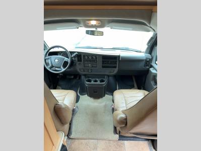 The Pleasure-Way Lexor TS 21-foot RV, available at Vogt RV Centers, has plenty of power with a 2000-watt pure sine wave inverter, a 2.8 KW gasoline generator and dual 100-amp lithium batteries. Luxurious touches include two 7-inch touch screen control panels, privacy shades, an expansive wet bath, a Corian kitchen countertop, and a queen size bed.
